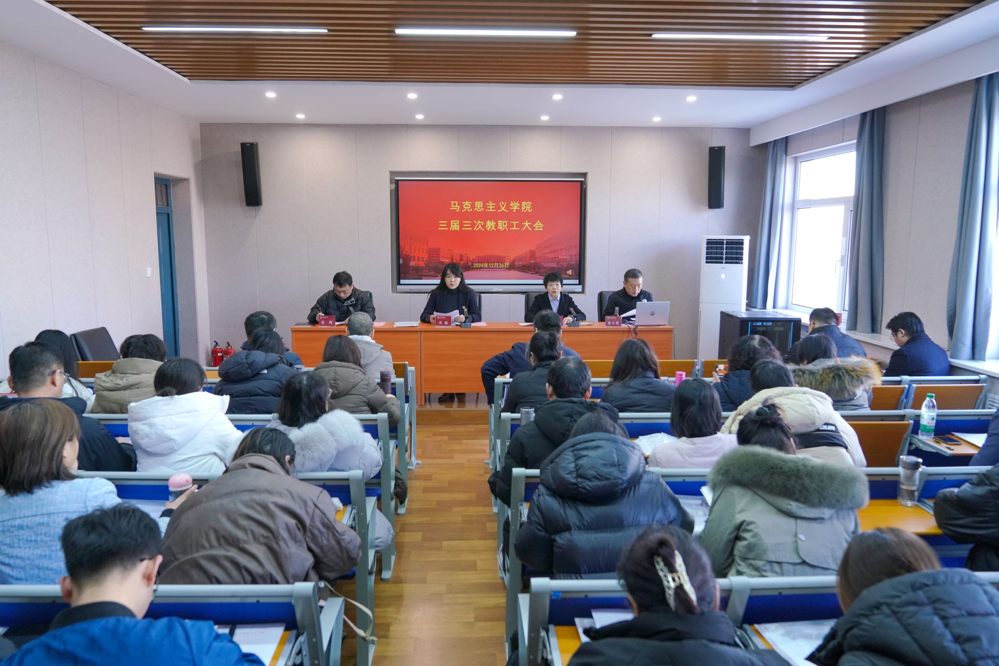 常务副院长(正处级)赵改萍代表学院作了题为《赓续前行谱新篇 踔厉奋发启新程》的工作报告。从党建、人才培养、“大思政课”、学科建设、平台建设等方面全面回顾了学院一年来的整体发展情况,并通报了2025年的重点工作安排;院工会主席郭小凯作了《2024年工会工作报告》,就一年来工会开展的推进民主建设、做好民生实事、加强经费管理等工作进行了汇报。