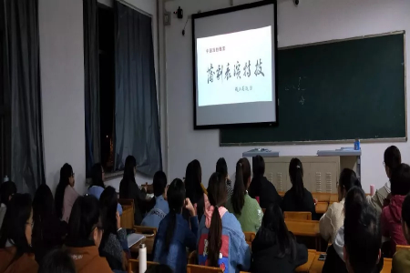 教学伊始,付增之老师向学生介绍了山西的各类戏曲剧种以及戏曲行当。之后通过视频欣赏、现场教学体验等不同形式带领学生欣赏感悟戏曲魅力。通过欣赏《蒲剧表演特技》纪录片、蒲剧《土炕上的女人》、京歌《梨花颂》、京剧《雁荡山》《定军山》、丑角数板《报灯名》等经典戏曲剧目,以及山西本土戏曲栏目《伶人王中王》,并给同学们教了蒲剧《土炕上的女人》伴唱、京歌《梨花颂》、丑角数板《报灯名》,同学们切实感悟到“台上一分钟,台下十年功”的戏曲真谛。在学习梆子戏及其他戏曲剧种的基础上,付老师还特意邀请了“晋风社”社员为同人漫画