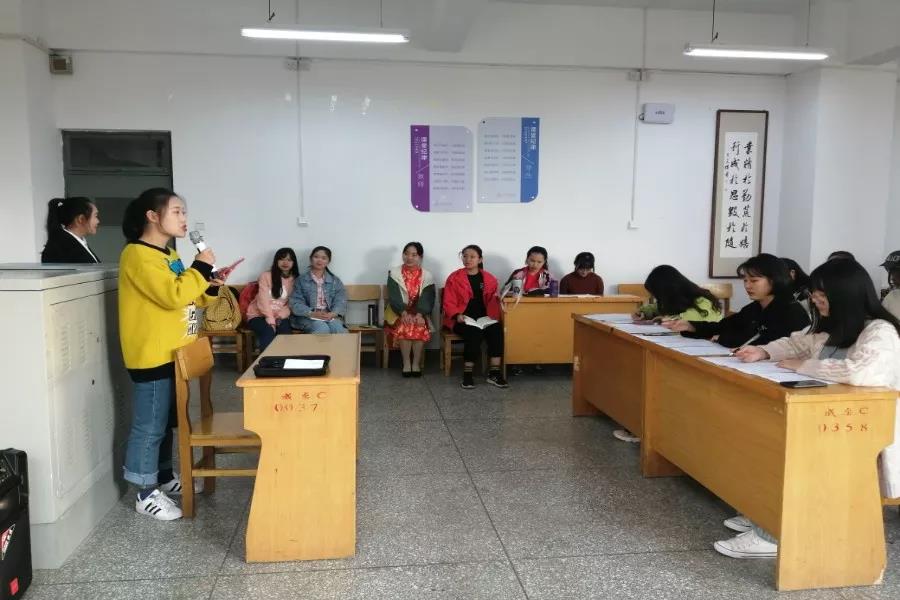 大赛伊始,由主持人为各参赛人员宣读比赛规则:此次大赛分为自我介绍、情景主持、即兴评述和妙语连珠四个环节。参赛人员由院学生会文礼部和各班学生代表组成。