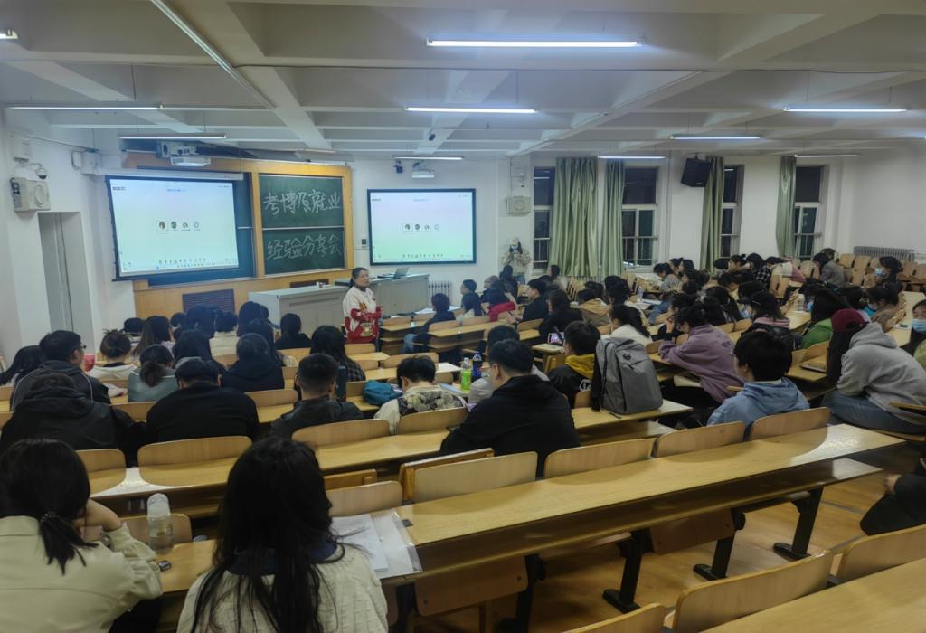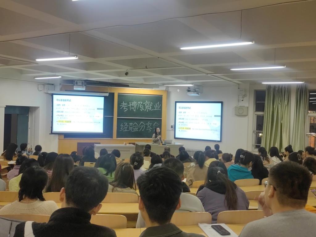 四位优秀毕业生与同学们进行线上和线下交流,分享就业及考博经验。