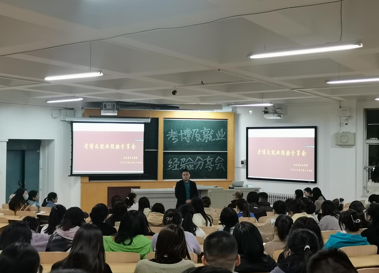 于3月24日在南区4号楼213教室举办研究生就业及考博经验分享会。此次分享会由研究生教学秘书葛秀琴主持,院党委副书记杜辉、研究生毕业班辅导员杨海亮出席,2023届毕业生和2021级研究生参加。分享会邀请同人漫画