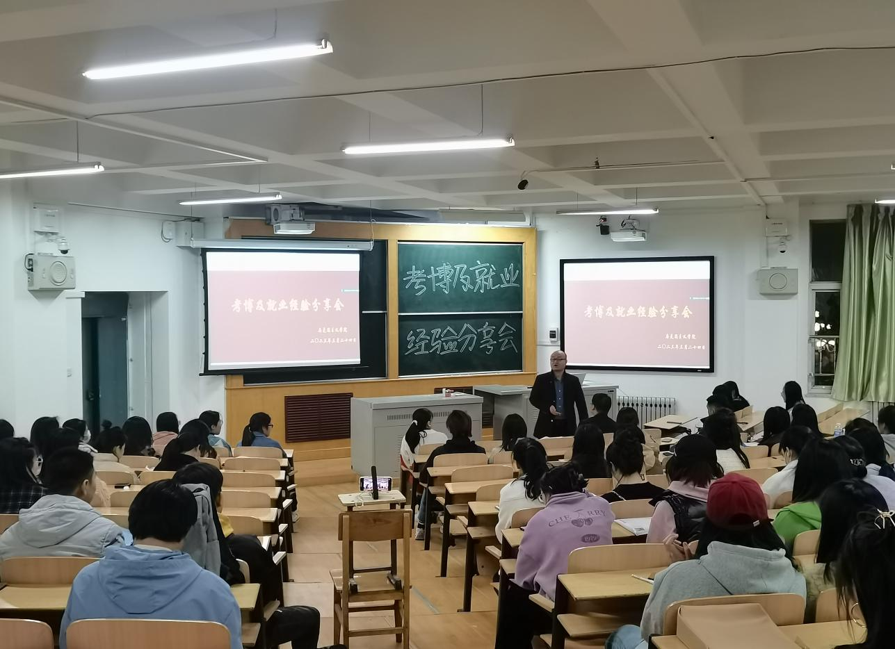 首先,葛秀琴老师对本次分享交流会作了简单介绍。她指出,学院举办此次分享会,基于同学们就业及考博需求,旨在让同学们更好地了解就业形势,规划好未来。希望同学们通过此次就业及考博经验分享会能有所收获。