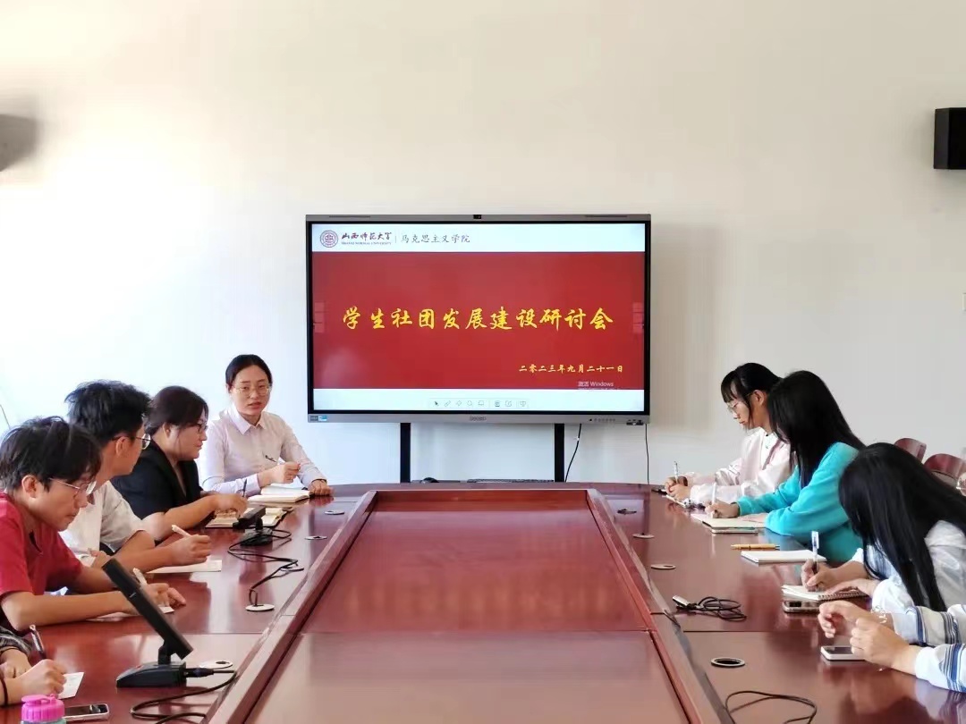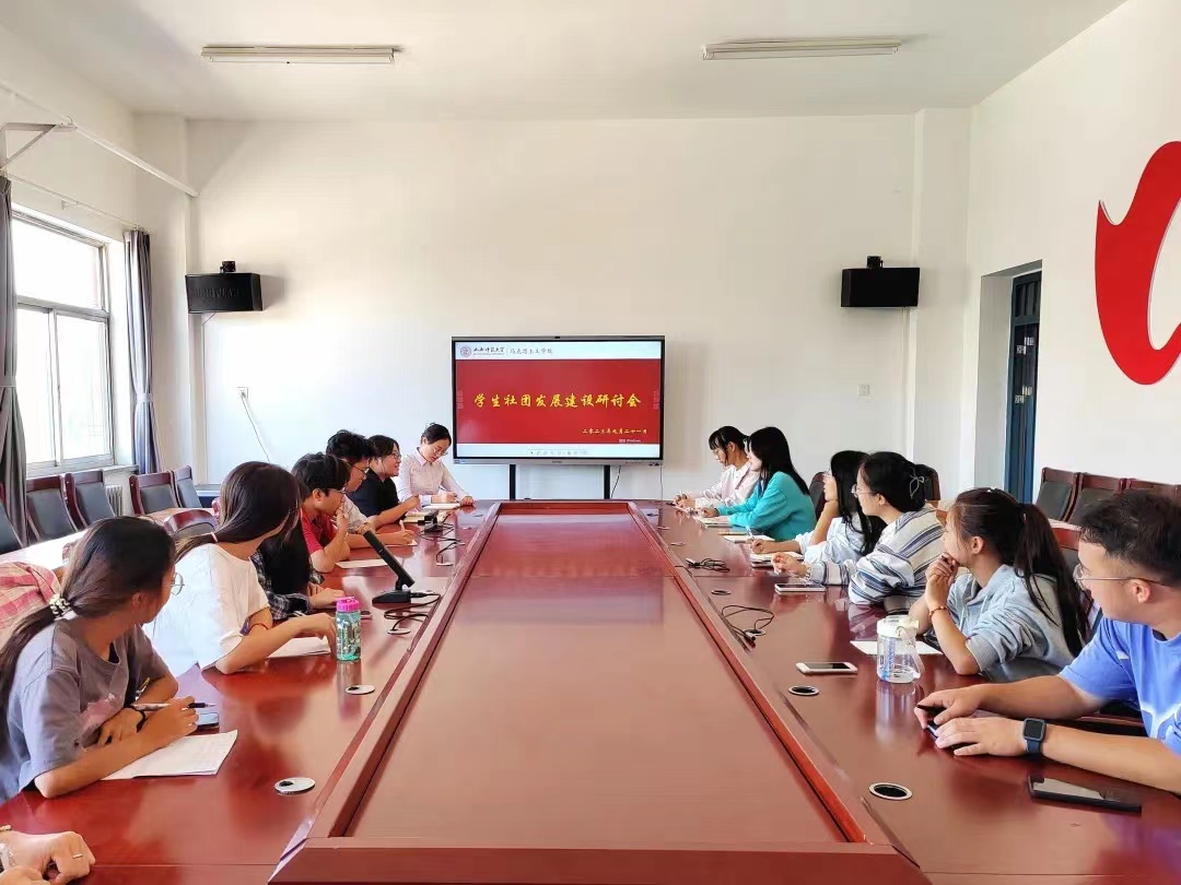 于9月21日在南区1号楼511会议室举行了思政教育引领学生社团发展建设研讨会。本次会议由院团委副书记张瑞琴主持,社团新任思政课指导老师、青年博士王培培出席会议,学生会主席团全体成员、各社团负责人及学创部负责人共同参加。