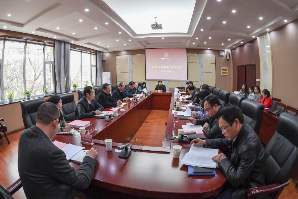 杨军在讲话中对师范专业认证的前期准备工作给予了充分肯定,指出师范专业认证是提高我校办学水平和教学水平的重要抓手,要强化目标导向,以师范专业认证工作为契机,认真梳理规范我校教育教学各环节,达到以评促建、以评促改、以评促强的目的,不断提高我校人才培养质量,彰显我校师范教育特色。