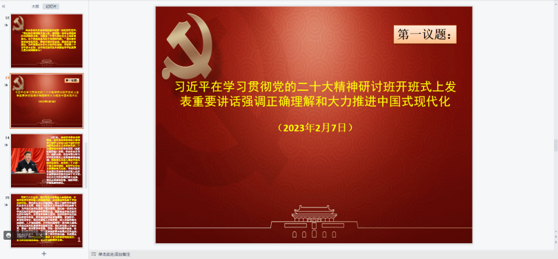 求真力行党支部组织党员开展集体学习,宣传委员王文祥同志以“深入学习贯彻党的二十大报告”为题,带领大家原原本本、逐字逐句学习党的二十大报告。
